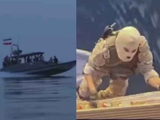 In the video released by Iranian authorities, armed personnel of the Islamic Revolutionary Guard Corps (IRGC) can be seen approaching the vessel in fast boats. Masked commandos are then seen boarding the ship using ropes and ladders, taking control of the deck, and detaining the crew.