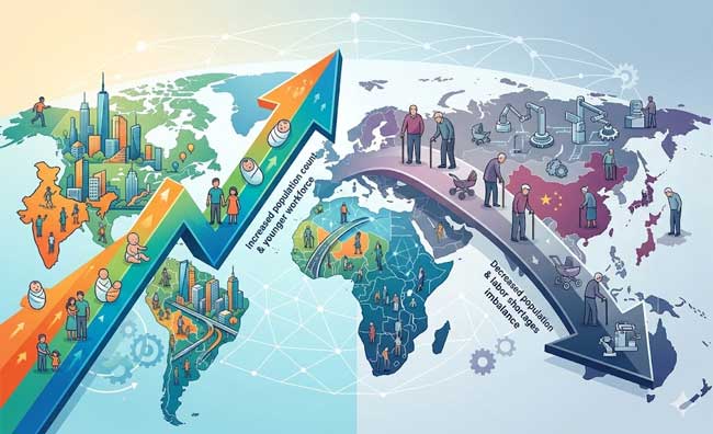 The year 2050 will mark a major demographic turning point for the world. While countries like India and several African nations will continue to grow, China, Japan, and much of Europe will face shrinking populations. These contrasting trends will reshape global economic power, labor markets, and international relations in profound ways.